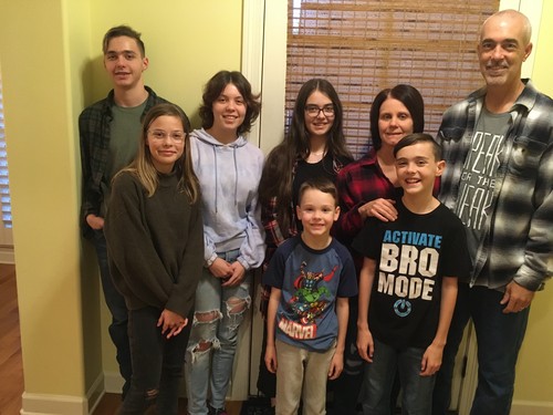 So, this is what happens when everyone is talking (NOT complaining, just “talking”...about how long this picture is taking) and then Dad says, “Ok, everyone just have fun!” Click! Yeah, that’s sorta what lots of life looks like: some of it a bit blurry, some of it not all that focused on the camera, some of it enjoying this moment WAY too much, and the hidden-but-not-hidden that is holding everything together. (Yes, Denise really is in this picture.)