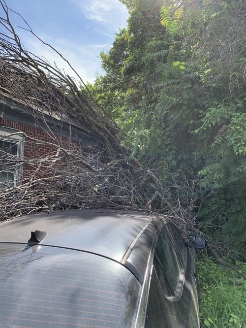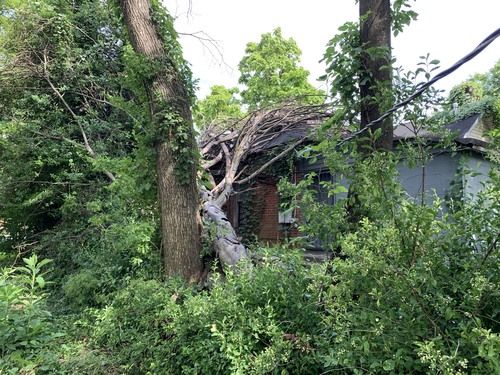 Yeah, a recent storm had collapsed an entire HUGE tree onto Steve’s house, knocking his chimney over, blocking the entire side of the house, and causing leaks in his roof. I immediately sensed in my spirit the Lord prompting me to do something. Well, I don’t know anything about removing trees from housetops…but I know a guy. So I called my arborist friend and he and I worked half a day in 99-degree heat, sweating buckets and hauling an enormous pile of limbs and branches to the curb. A week later, and Jesse was here to help us remove another massive pile of tree parts from the house. Now that it was cleared, it was quite obvious that the roof needed some serious repair. Well, I don’t know anything about roofing…but I know a guy. I contacted a contractor whom I’d met a couple weeks back and he came over to take a look. By the end of the day, the roof was cleared of debris and Steve’s leaks had some giant tarps helping to keep out the rain.